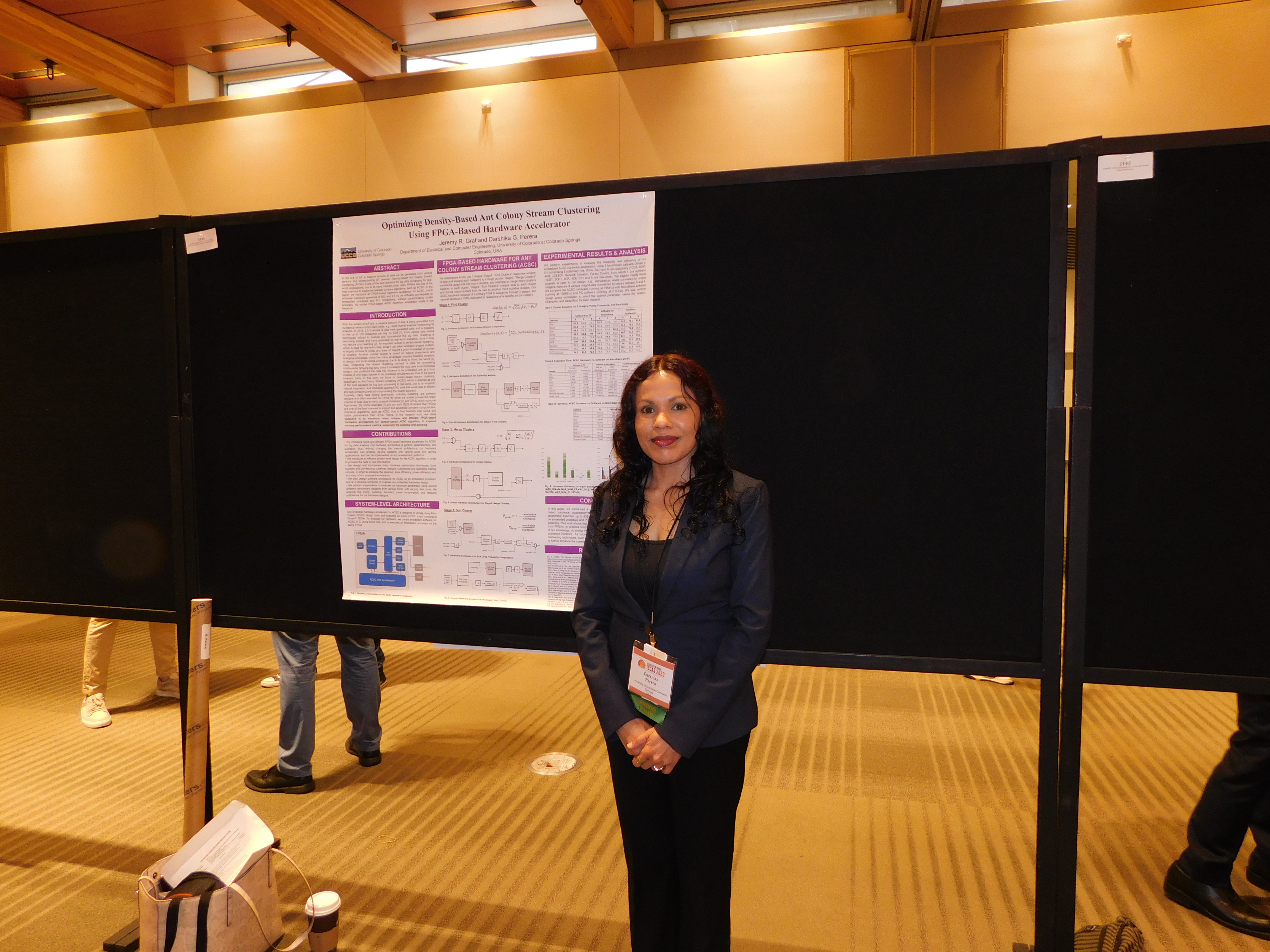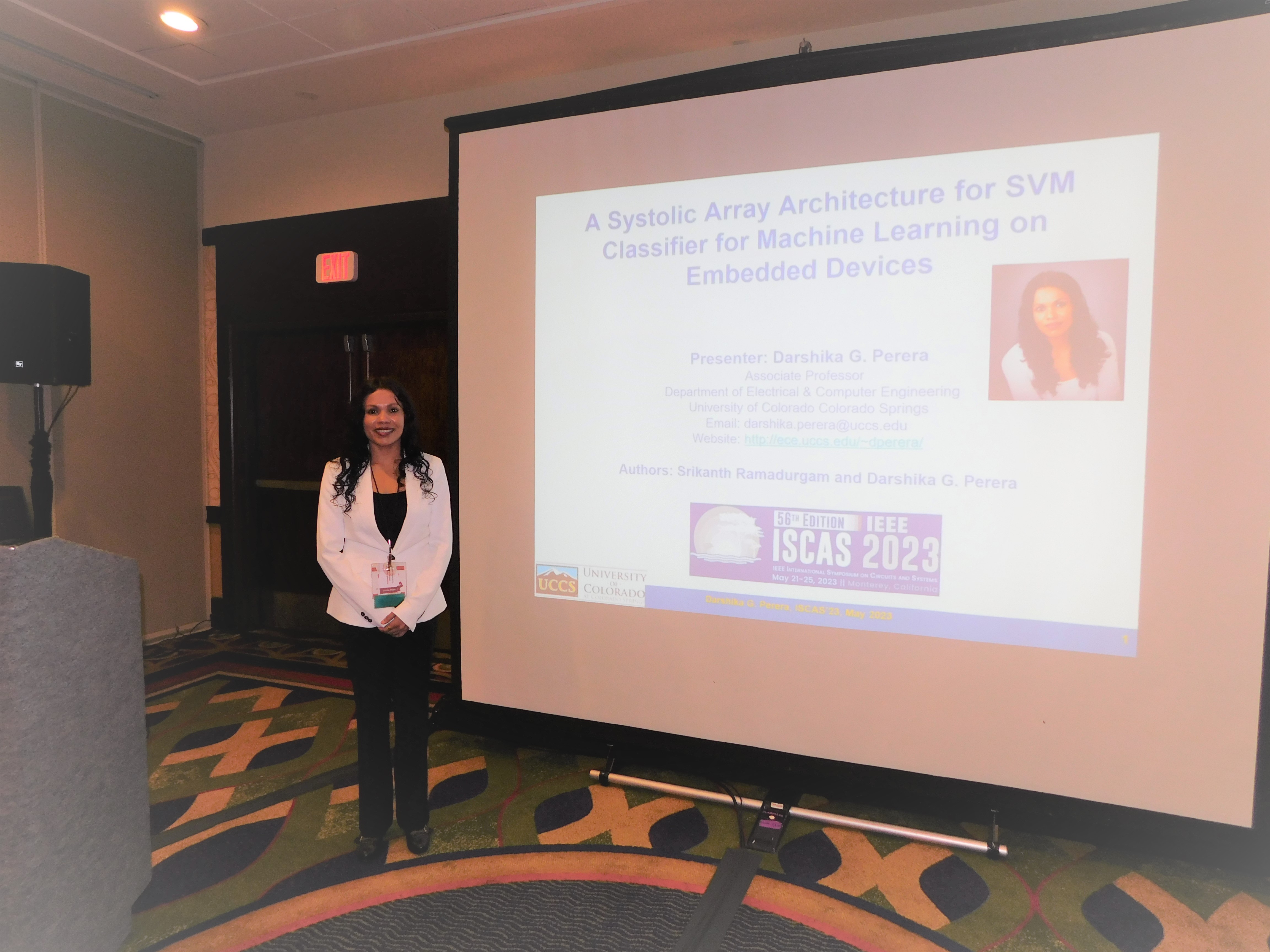 Two of our papers are accepted at the IEEE International Symposium on Circuits and Systems (ISCAS'23). (1) "A Systolic Array Architecture for SVM Classifier for Machine Learning on Embedded Devices", with my PhD student, Srikanth. (2) "Optimizing Density-Based Ant Colony Stream Clustering Using FPGA-Based Hardware Accelerator", with my MSc student, Jeremy. I was in Monterey, California (in May 2023), to present our papers and to serve as a session chair for two sessions on programmable hardware. It was very nice to meet with many colleagues from CAS society.(See pictures below).